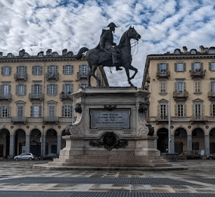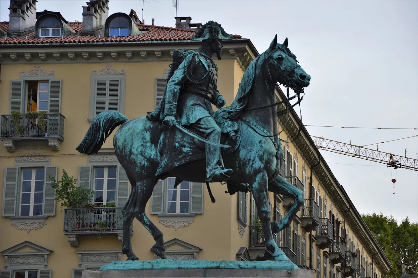 Stanislao Grimaldi, pittore, incisore e scultore, docente all’Accademia Albertina, ebbe la commissione dell’opera e la statua fusa in bronzo fu collocata nella piazza solo nel 1891.