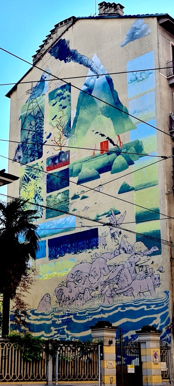 La vita del nostro pianeta e quella che lo abita sono indissolubilmente legate. Ogni aspetto di questa forza organica, di questa complessa rete di connessioni, rappresenta un tassello dell’esistenza. Questo muro, in corso Palermo, 40, Torino, racconta solo una piccola porzione di un vasto mosaico e ci offre uno spunto per riflettere su cosa succede, o potrebbe succedere, quando questo equilibrio delicato viene alterato.