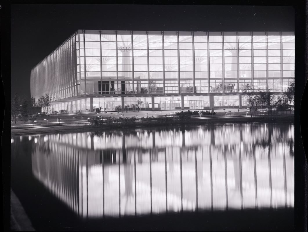 Il progetto del padiglione espositivo riprende le caratteristiche delle grandiose costruzioni realizzate per Esposizioni Universali ottocentesche con l’utilizzo di grandi pareti in ferro e vetro traducendole in forma razionalista.