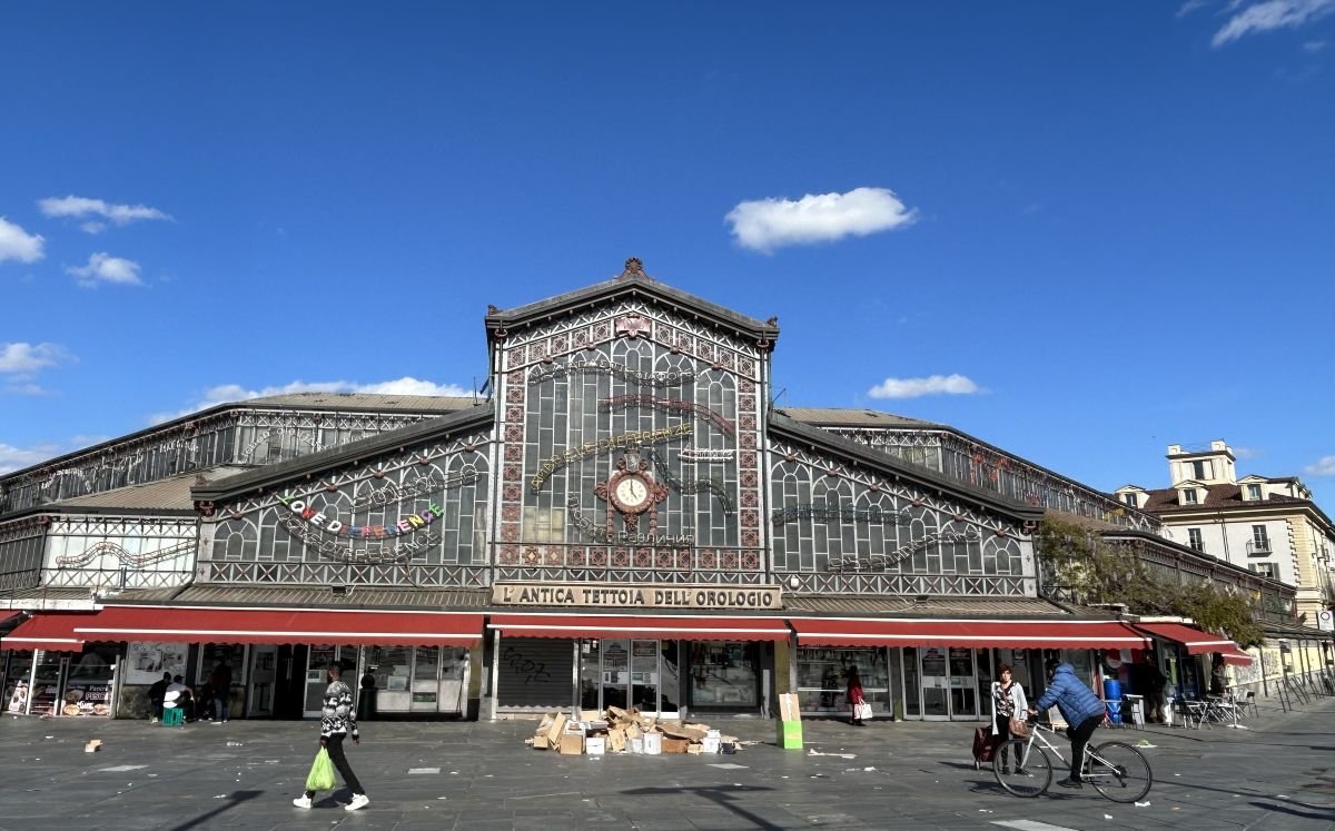 Nel 1835 a seguito di un’epidemia di colera la municipalità vieta la macellazione degli animali e la manipolazione dei pesci nel centro città nelle piazze Palazzo di Città (piazza delle Erbe) e Corpus Domini. Al fine creare nuovi spazi igienicamente controllati vennero costruite delle tettoie, che nel corso del tempo diventarono veri e propri padiglioni in stile neoclassico, il Mercato Alimentare ed il Mercato Ittico a cui si aggiungerà nel 1916, “La tettoia dell’orologio” la maggior costruzione in ferro e vetro della città in stile Liberty. L’installazione con i neon sulla facciata fa parte dell’evento “Luci d’artista” che dal 1998 anima il periodo natalizio torinese.