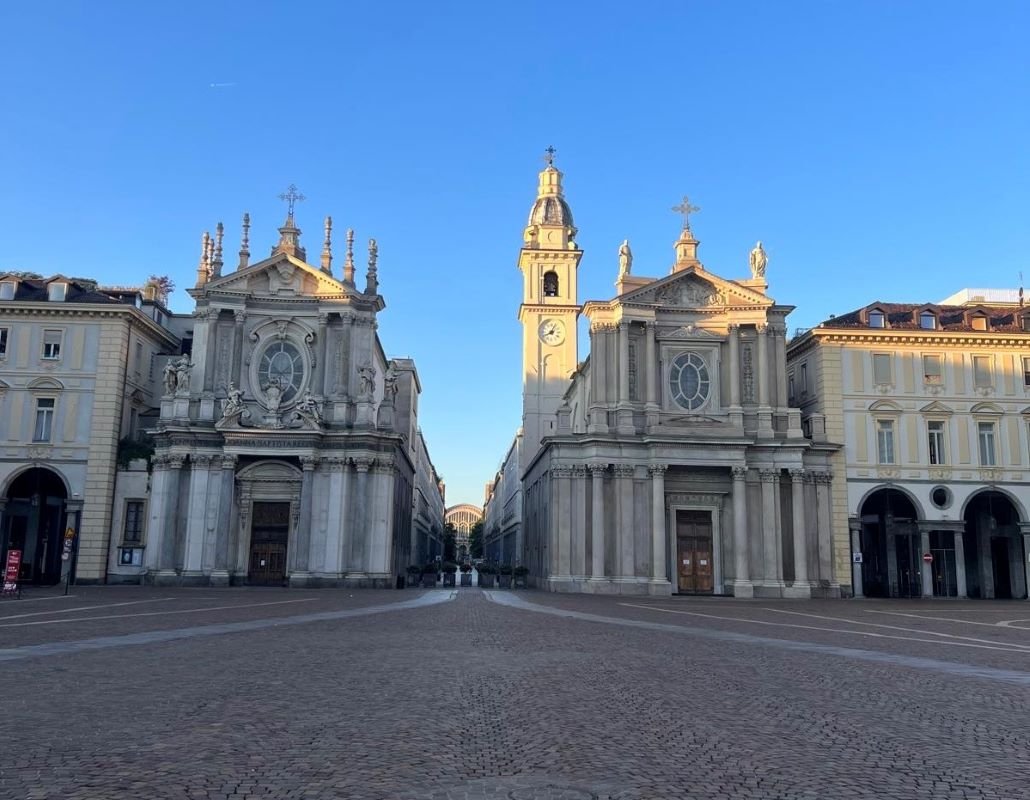 L’architetto reale Carlo Castellamonte ideò, sulla direttrice d’espansione, una vasta piazza rettangolare sul modello francese delle “Place Royale” e due chiese gemelle verso sud.