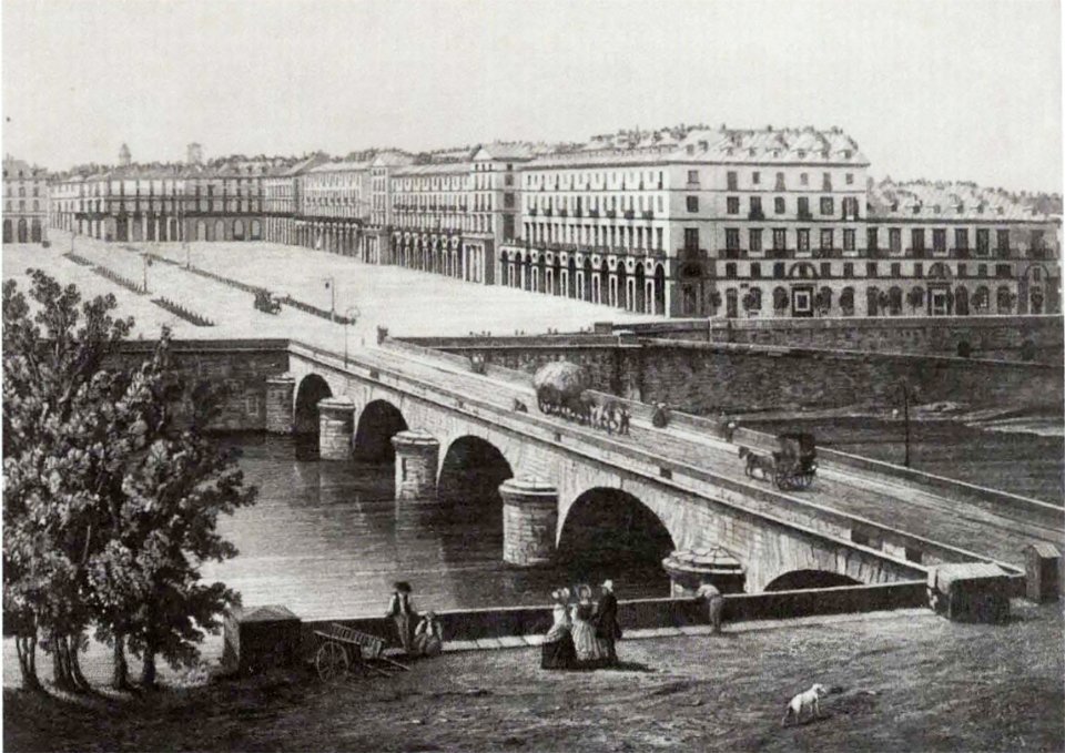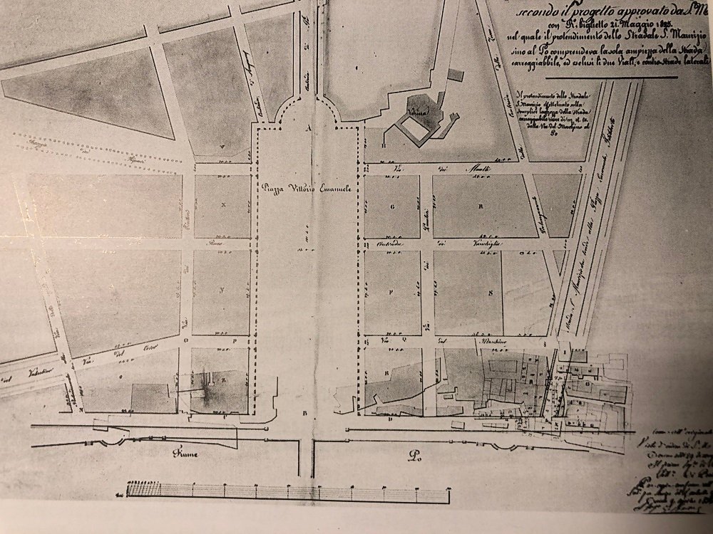 Nell’epoca napoleonica, con la demolizione della porta di Po progettata dall’architetto Guarino Guarini e dei bastioni difensivi, era stata progettata una piazza a ventaglio con portici. Il progetto venne più volte modificato; nel 1817 il re Vittorio Emanuele I avrebbe voluto realizzare una Piazza d’Armi di forma rettangolare trasversale rispetto all’asse di via Po e del ponte.