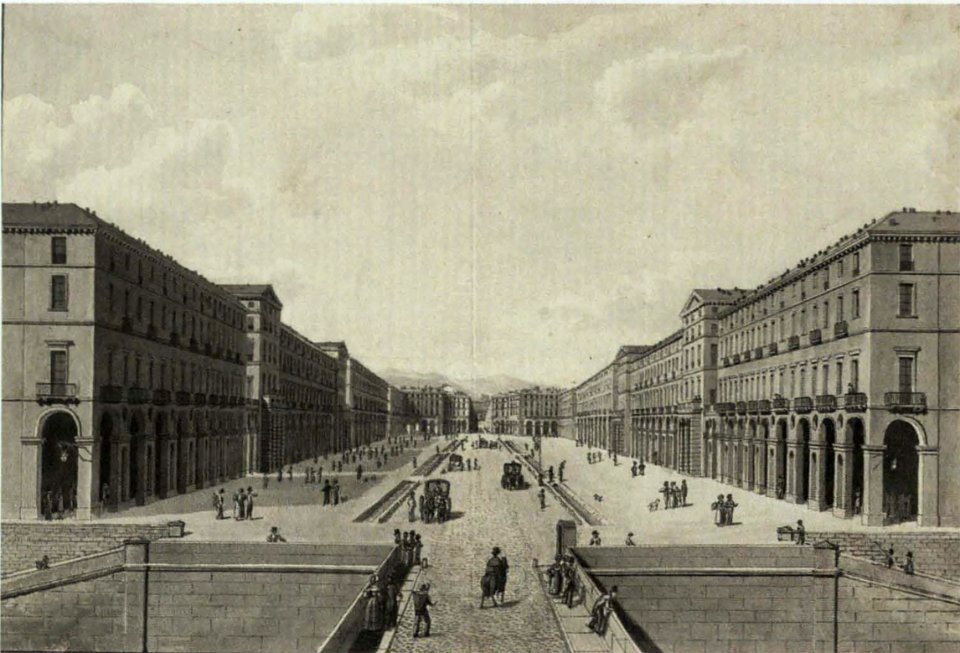 Durante il regno di Carlo Felice, nel 1825, venne incaricato l’architetto ticinese Giuseppe Frizzi che progettò una piazza longitudinale di quasi 40 mila metri quadri con una lunghezza di 360 metri ed una larghezza di 111 metri, integrando gli elementi stilistici barocchi preesistenti con nuovi fabbricati neoclassici e mantenendo la tipologia di disegno unitario di facciata con portici di via Po.
