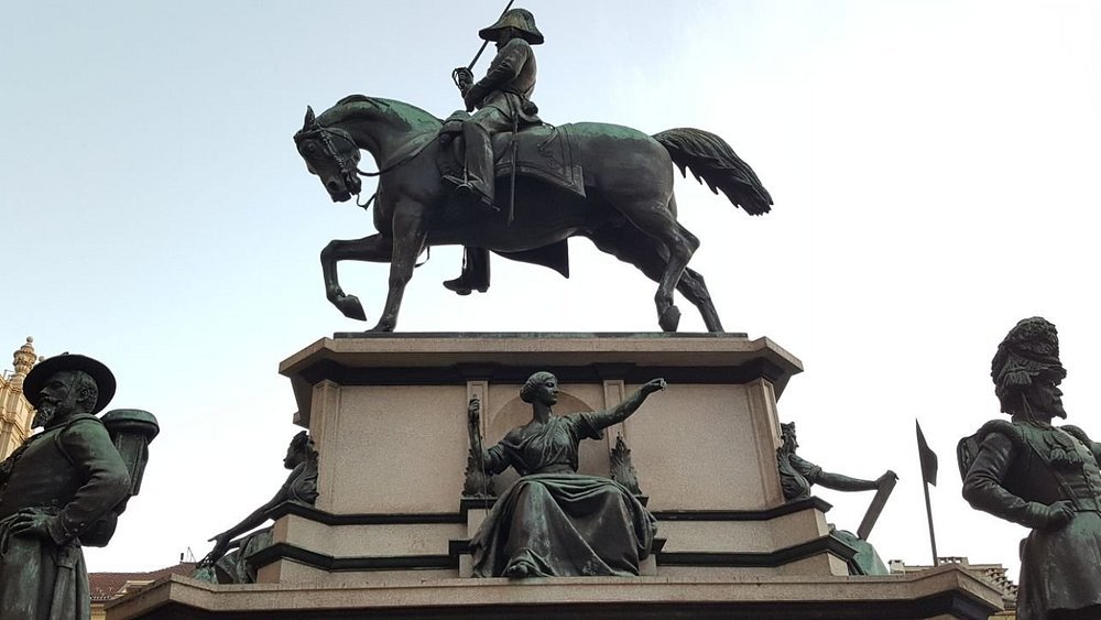 Il monumento equestre di re Carlo Alberto di Savoia (1798 – 1849) fu eseguito in bronzo tra il 1856 e il 1860 da Carlo Marochetti (Marocchetti) (1805 – 1867) e posto nel 1861 sull’omonima piazza.