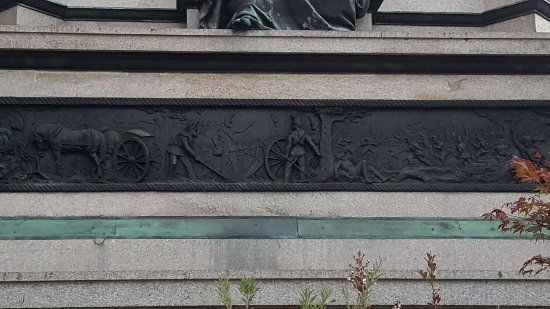 I quattro bassorilievi posti ai lati del secondo basamento rappresentano la battaglia di Goito, la battaglia di Santa Lucia, l’abdicazione e la morte a Oporto di Carlo Alberto.