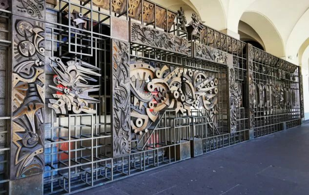 Nel 1994 all’esterno del Teatro Regio fu installata la cancellata bronzea Odissea musicale, opera del celebre scultore Umberto Mastroianni.