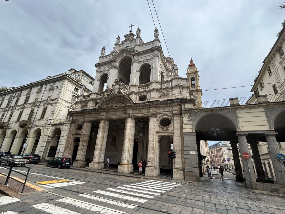 Sullo stesso lato all’angolo tra via Po e via Sant’Ottavio la continuità della facciata è interrotta in prossimità della chiesa Santissima Annunziata costruita negli anni Venti del Novecento secondo il gusto “neobarocco” dell’epoca su progetto di Bartolomeo Gallo.