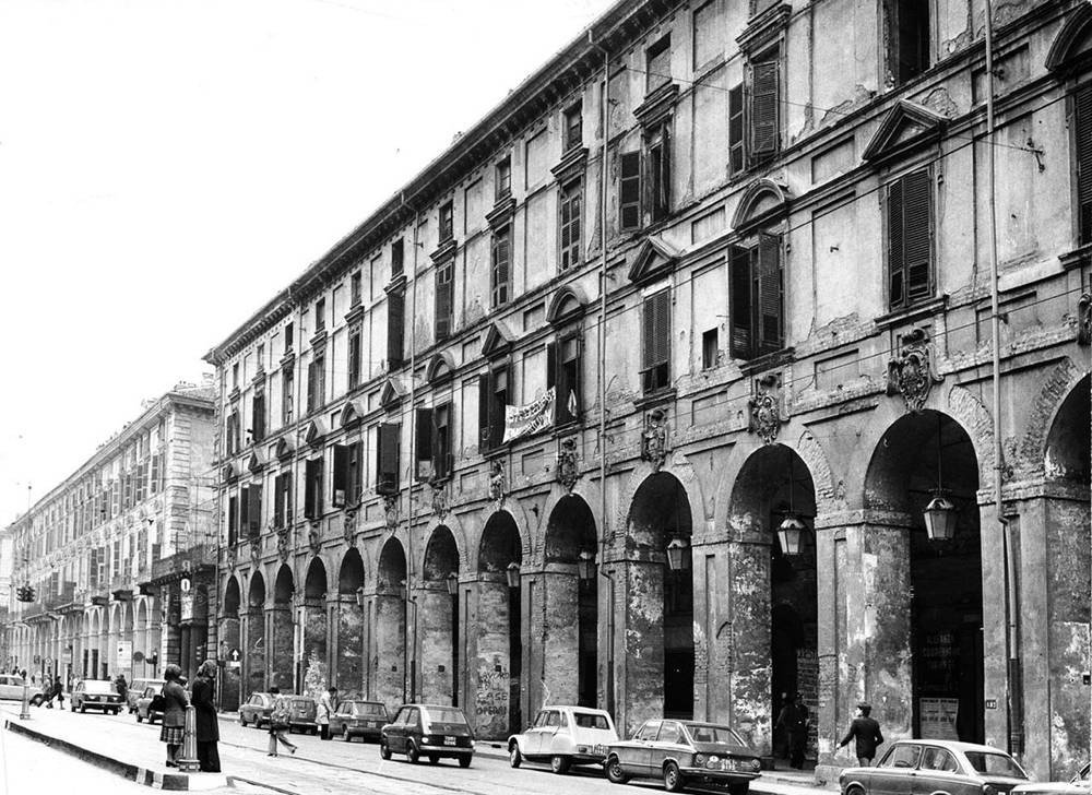 Per quasi due secoli via Po terminava con una”Esedra”, simbolico riferimento dell’apertura della città verso il territorio circostante lasciando un vasto spiazzo verso il Po. Solo nel 1825 venne progettata piazza Vittorio Emanuele (ora piazza Vittorio Veneto) che inizialmente aveva funzione di piazza d’armi. La realizzazione del progetto di via Po si trascinò a lungo, tant’è che le facciate furono compiute solo nel secolo successivo.