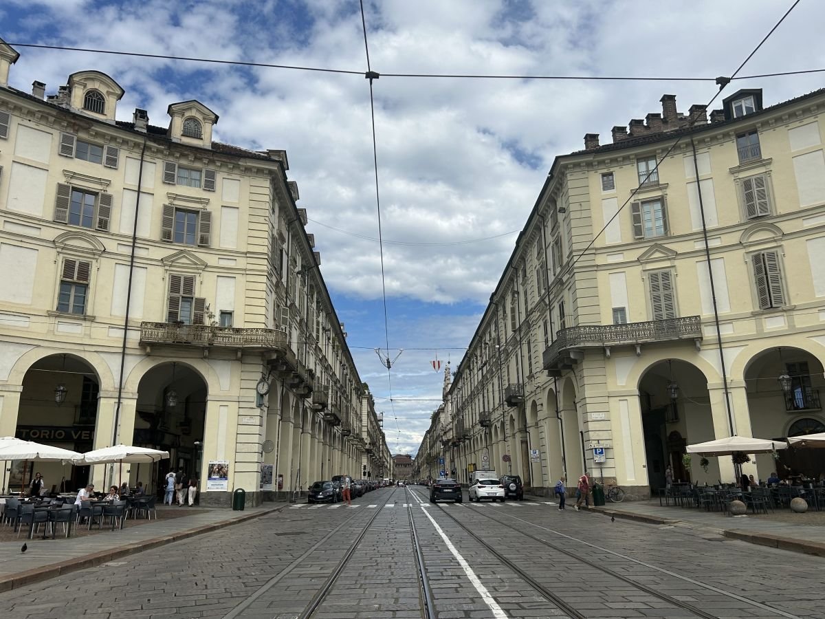 Via Po crea un cannocchiale prospettico unico; percorrendola verso il Po con il fondale della Gran Madre di Dio e della collina e viceversa, salendo con lo sfondo austero del Castello.