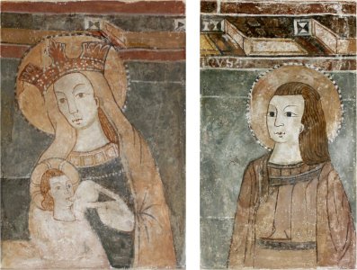 La cappella conserva tracce di affreschi del XIV secolo: il primo è una Madonna allattante; il secondo una santa dai lunghi capelli castani che le scendono dietro le spalle. In origine facevano parte di un’unica figurazione che si stendeva sul muro destro della navata. Le figure sono condotte secondo uno schema ancora trecentesco.