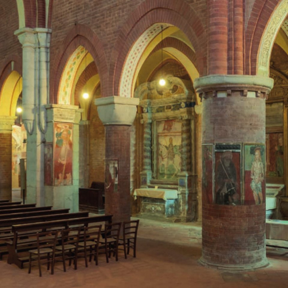 Con il XIV secolo iniziò per l’Abbazia un periodo di crisi spirituale ed economica, sino al 1478 quando papa Sisto IV la trasformò in commenda, favorendone la ripresa economica, a questo periodo risalgono gli affreschi di Franceschino Boxilio, visibili su alcune pareti e pilastri.