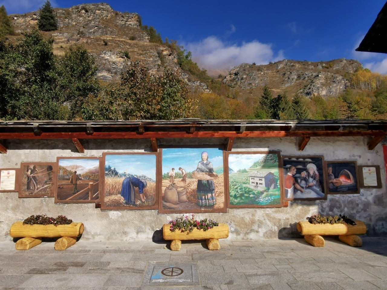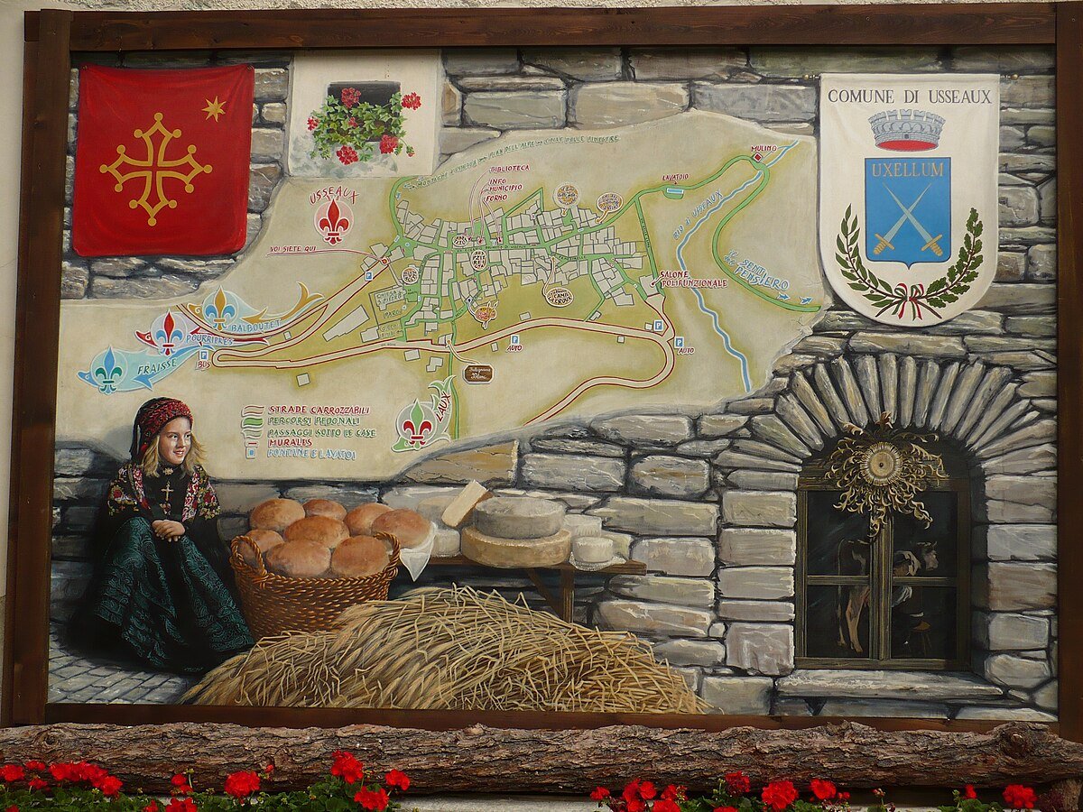 Usseaux è composto da meno di 200 abitanti che vivono in case di pietra e legno. I muri delle case, le piazze ed ogni angolo sono dipinti. In totale si possono scovare circa quaranta murales che raffigurano scene dell’antica tradizione contadina e racconti di favole e fiabe tipiche. Lungo le vie lastricate ci si imbatte in dipinti di finestre aperte da cui si affacciano talvolta bambini, vecchietti, gatti, lupi o altri animali. Una vera e propria opera d’arte a cielo aperto.
