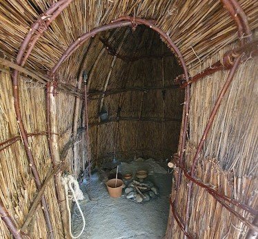 È stata ricostruita una capanna neolitica con oggetti all’interno.