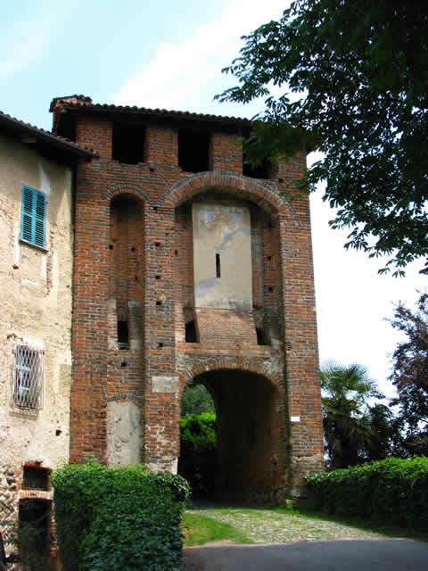 La torre-porta del ricetto aveva una doppio accesso (pedonale e carraio con ponte levatoio) ed era aperta verso l’interno; costruita in laterizio con mensole e piano a sbalzo con caditoie, è coronata da merlature. Risale alle sistemazioni del XV secolo.