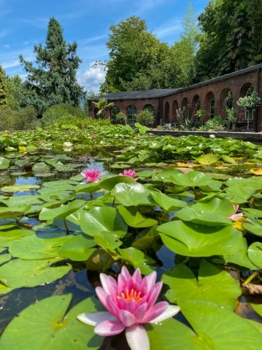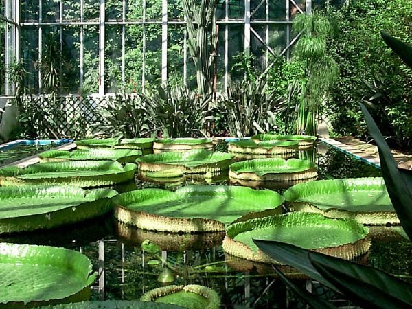 Vi è anche una serra con enormi ninfee e una vasca ovoidale piena di fiori di loto…