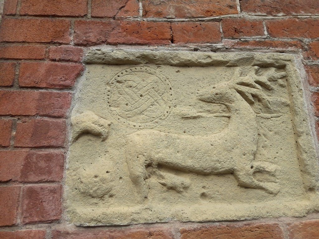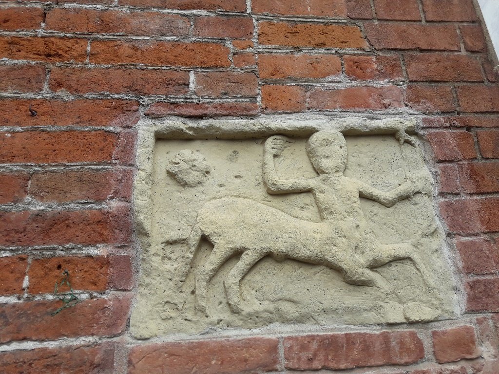 Di fianco all’ingresso due lastre a bassorilievo raffiguranti un centauro saettante e un cervo trafitto da una freccia, sono copie, perché gli originali romanici sono stati murati all’interno nella controfacciata.