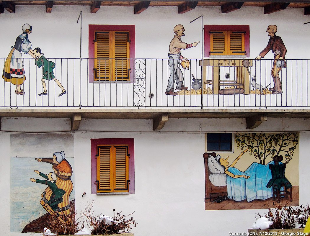 Vernante è un piccolo paese di appena 1100 abitanti a 20 chilometri da Cuneo, diventato celebre perché sui muri delle sue case e nelle sue strade rivive ogni giorno la celebre storia di Collodi con protagonista Pinocchio.