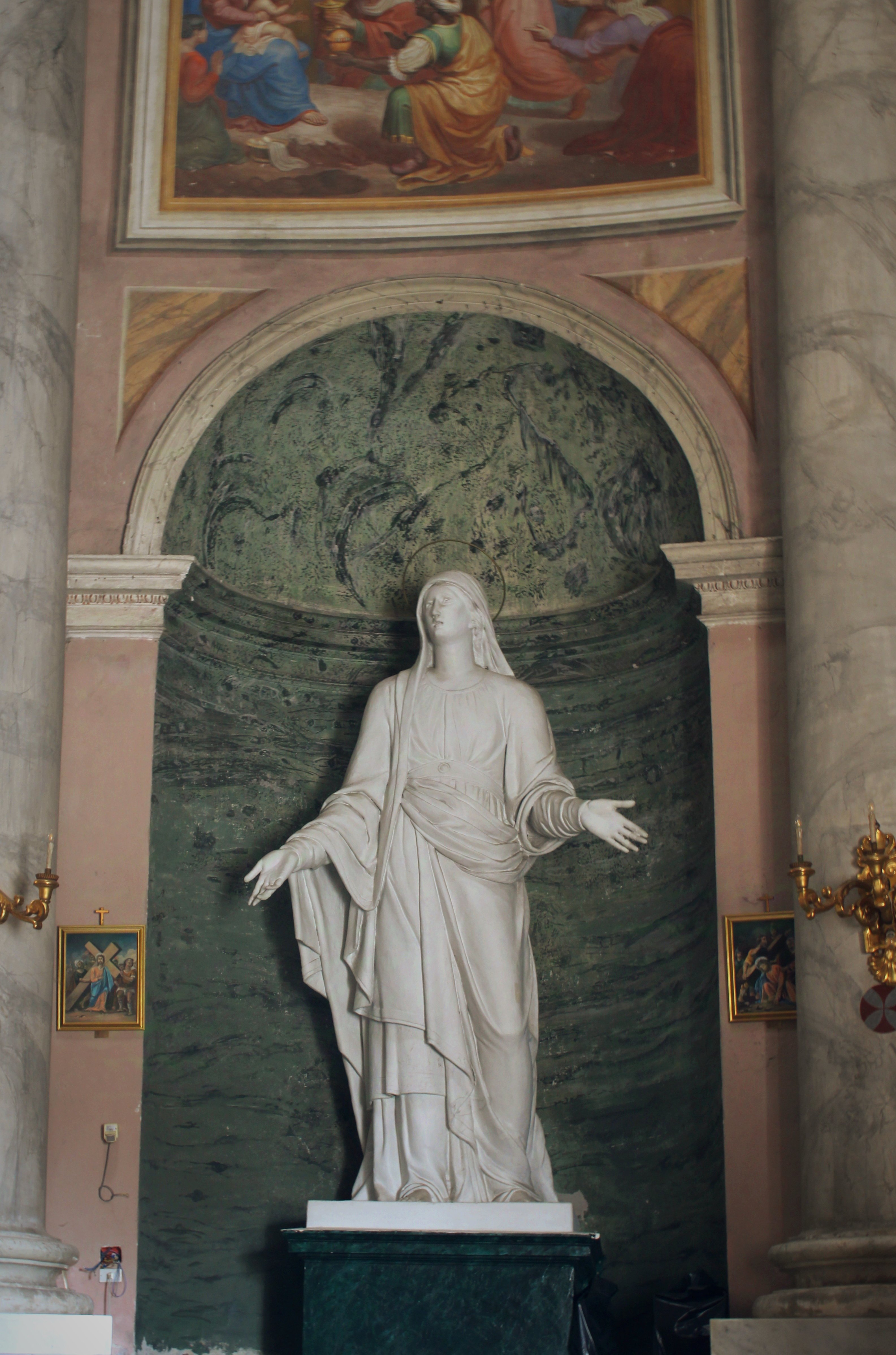 Quando ci troviamo davanti a questo edificio, la prima cosa che notiamo è la sua maestosità, accentuata dalle quattro colonne che abbelliscono la facciata principale, in stile neoclassico; i colori dominanti il bianco e l’azzurro.