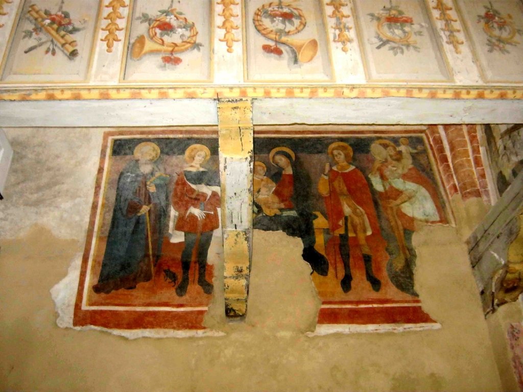 Affreschi quattrocenteschi di più mani si trovano sulla facciata: s. Cristoforo. s. Barbara, Deposizione; lunetta con Madonna e i santi Giacomo e Filippo.