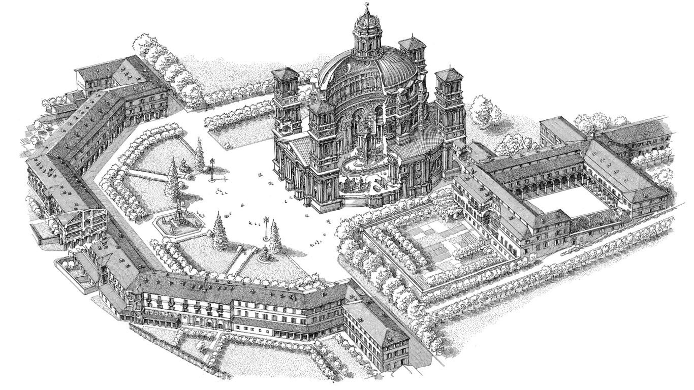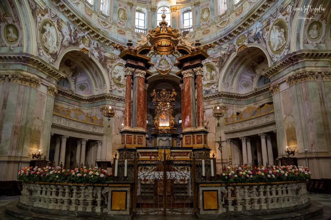Chiesa barocca edificata da più architetti nel corso del Sei e Settecento, con la cupola in muratura di forma ellittica più grande del mondo: 37,15 x 24,80 m.