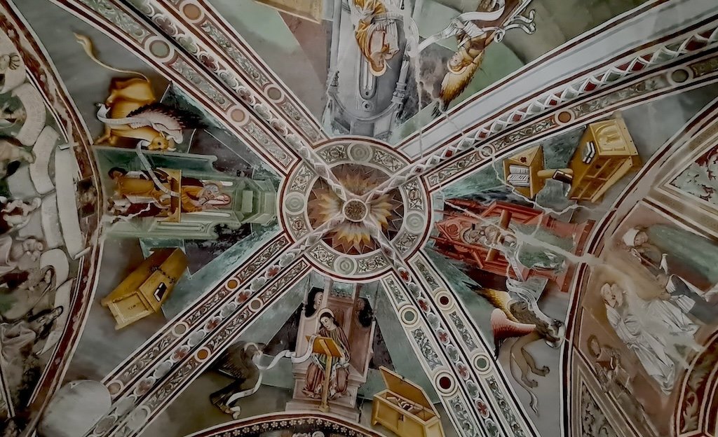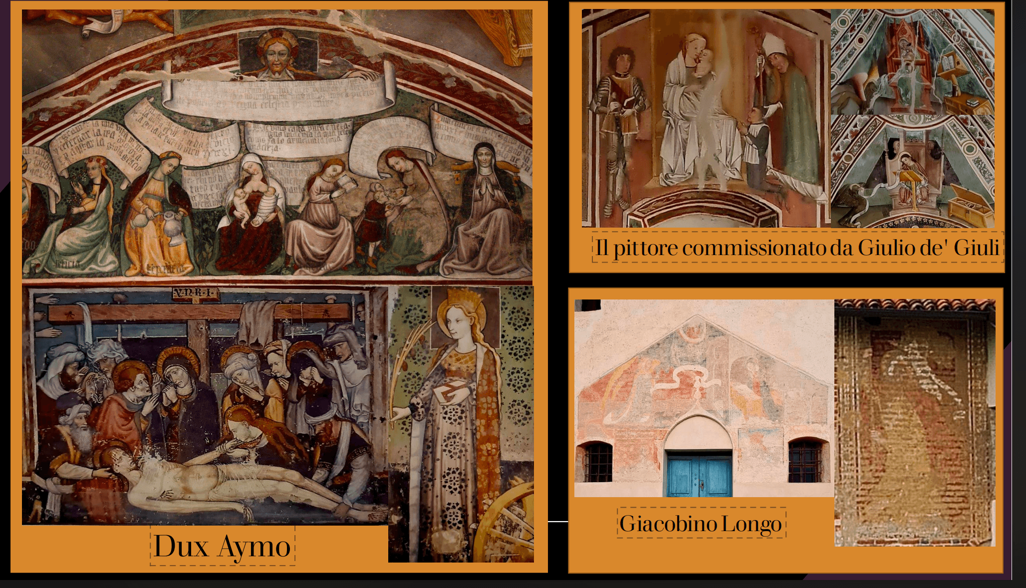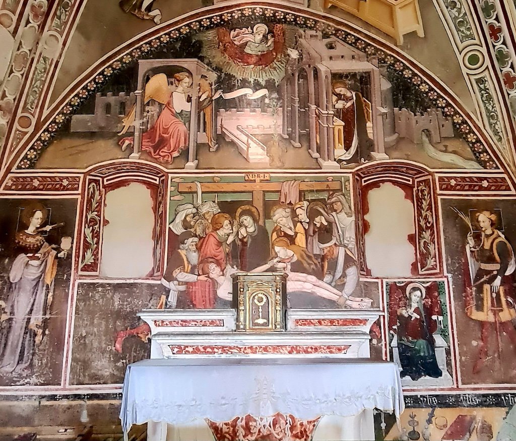 La Cappella di Missione a Villafranca Piemonte ospita uno dei più significativi esempi di arte gotica internazionale in Piemonte: il ciclo di affreschi di Aimone Duce (Dux Aymo), realizzato intorno al 1430. Questi affreschi, oltre a valorizzare la cappella dal punto di vista estetico, offrono una preziosa testimonianza della cultura artistica del Quattrocento e dell’influenza della corte dei Savoia sulla pittura dell’epoca.