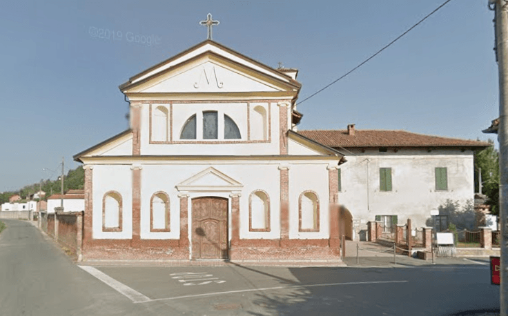 La chiesa, così denominata perché collocata presso un’antica fonte, è sita presso un complesso di antichi cascinali si presenta con una facciata in stile barocco in mattoni a vista, scandita da lesene, al centro il portale e ai lati sono presenti due piccole finestre quadrate. L’interno ad una navata e due cappelle laterali che formano un transetto. Nella cappella di sinistra si vede una pregevole tela seicentesca.