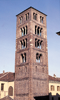 TORINO. Torre campanaria di Sant’Andrea, oggi del Santuario della ConsolataCampanile del secolo XI, con bifore e trifore. ArcheologicoStoricoMedioevoEdificio religiosoA cura di AC