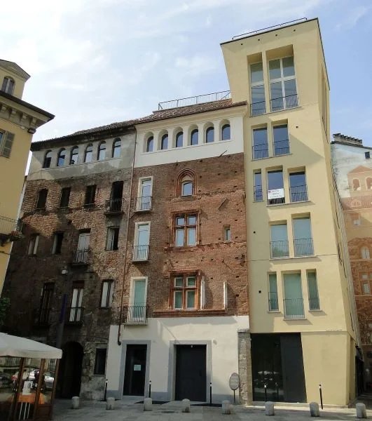 TORINO. Casa del Pingone.Uno dei pochi esempi di edilizia privata di origine medievale ancora visibili a Torino. ArcheologicoStoricoMedioevoDimora storicaPINGONE FilibertoA cura di AC