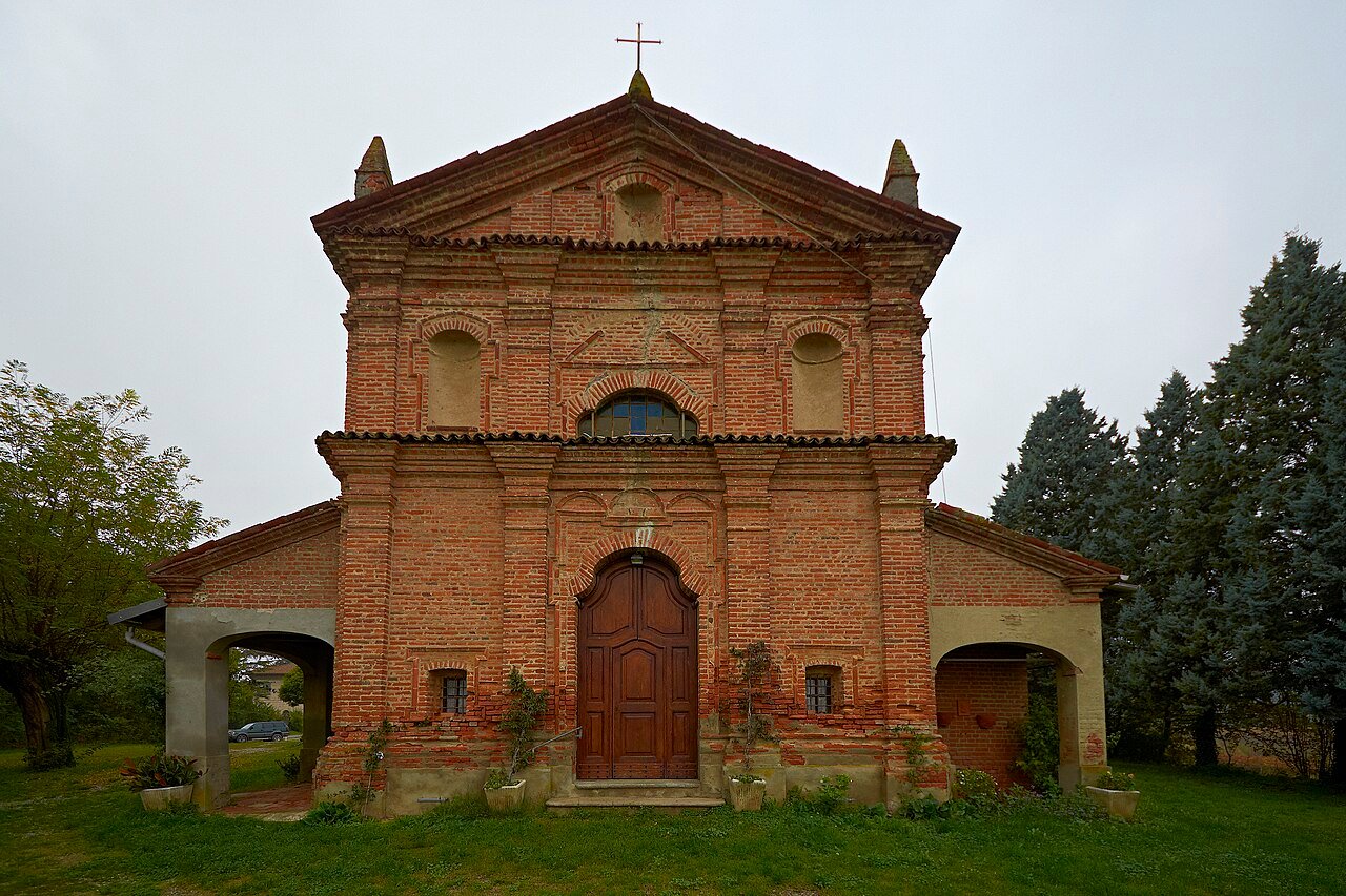 La chiesa, così denominata perché collocata presso un’antica fonte, è sita presso un complesso di antichi cascinali si presenta con una facciata in stile barocco in mattoni a vista, scandita da lesene, al centro il portale e ai lati sono presenti due piccole finestre quadrate. L’interno ad una navata e due cappelle laterali che formano un transetto. Nella cappella di sinistra si vede una pregevole tela seicentesca.
