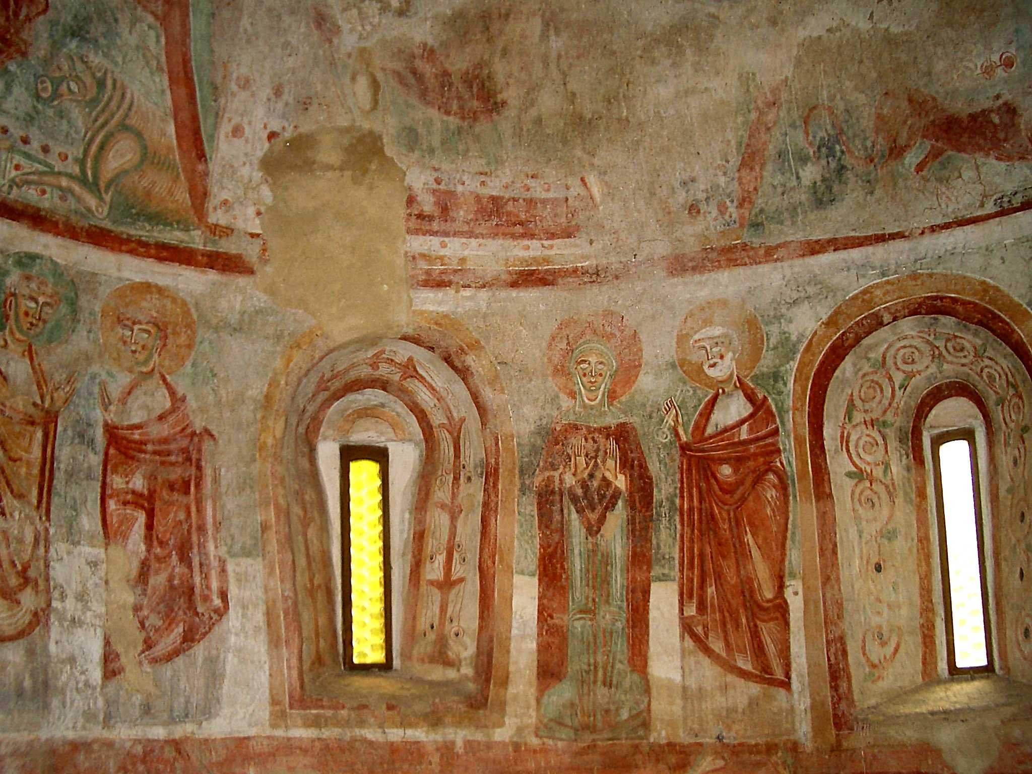 Le pareti e le volte sono coperte di interessanti affreschi che vanno dal XIV al XVII secolo.